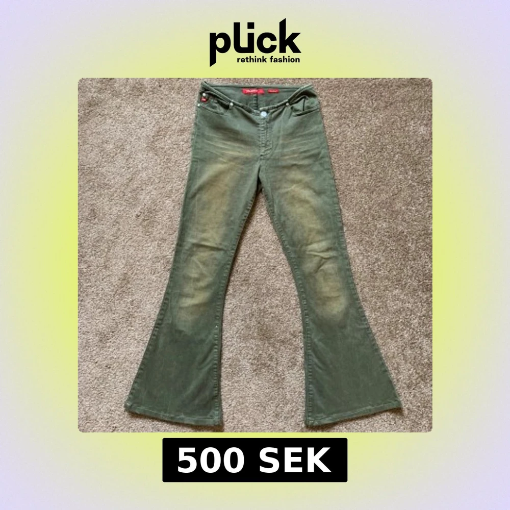 Suuuuuper snygga vintage Miss Sixty jeans med utsvängda passform och låg midja. Materialet är robust bomull och färgen är dämpad grön med slitningar.
