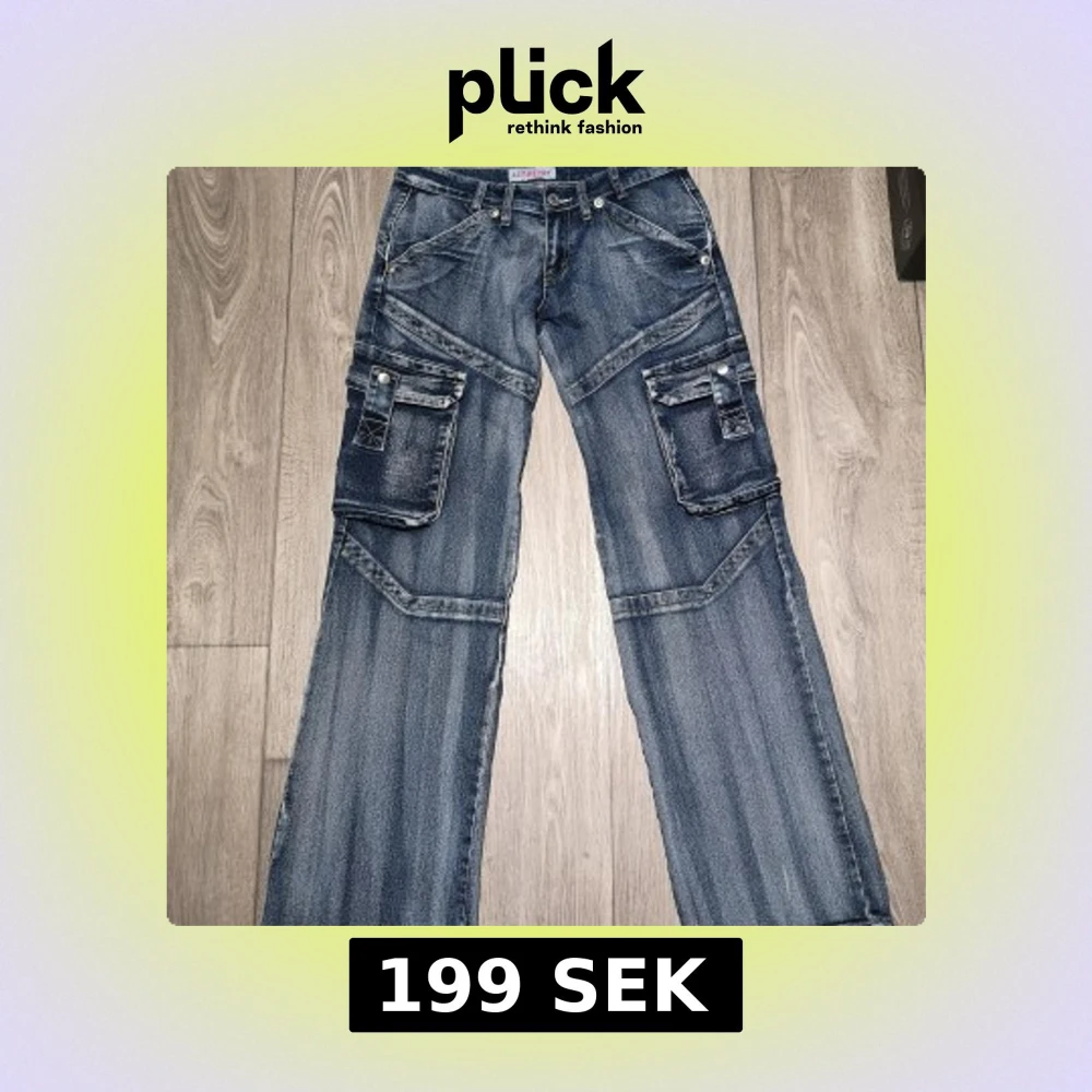Säljer nu dessa coola cargojeans då de tyvärr var för små för mig. Fint skick! Låg midja och rak modell. Står storlek L i men är mer som en XS-S. Stretchiga. Höftmått: 36 cm rakt över (tänk på att dessa jeans sitter under naveln). Innerbenslängd: 79 cm.