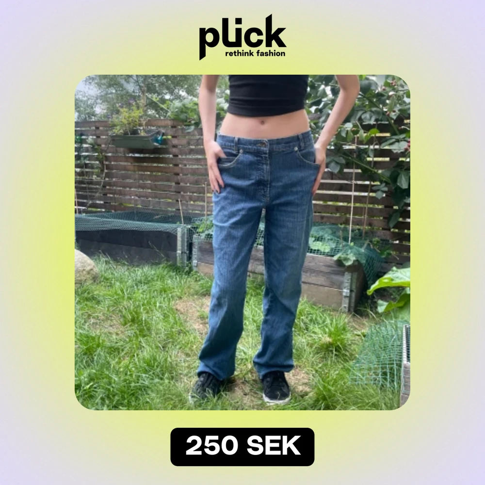 Säljer ett par klassiska blå jeans med baggy passform. De är lågmidjade Jeans och har traditionella fem fickor!❤️