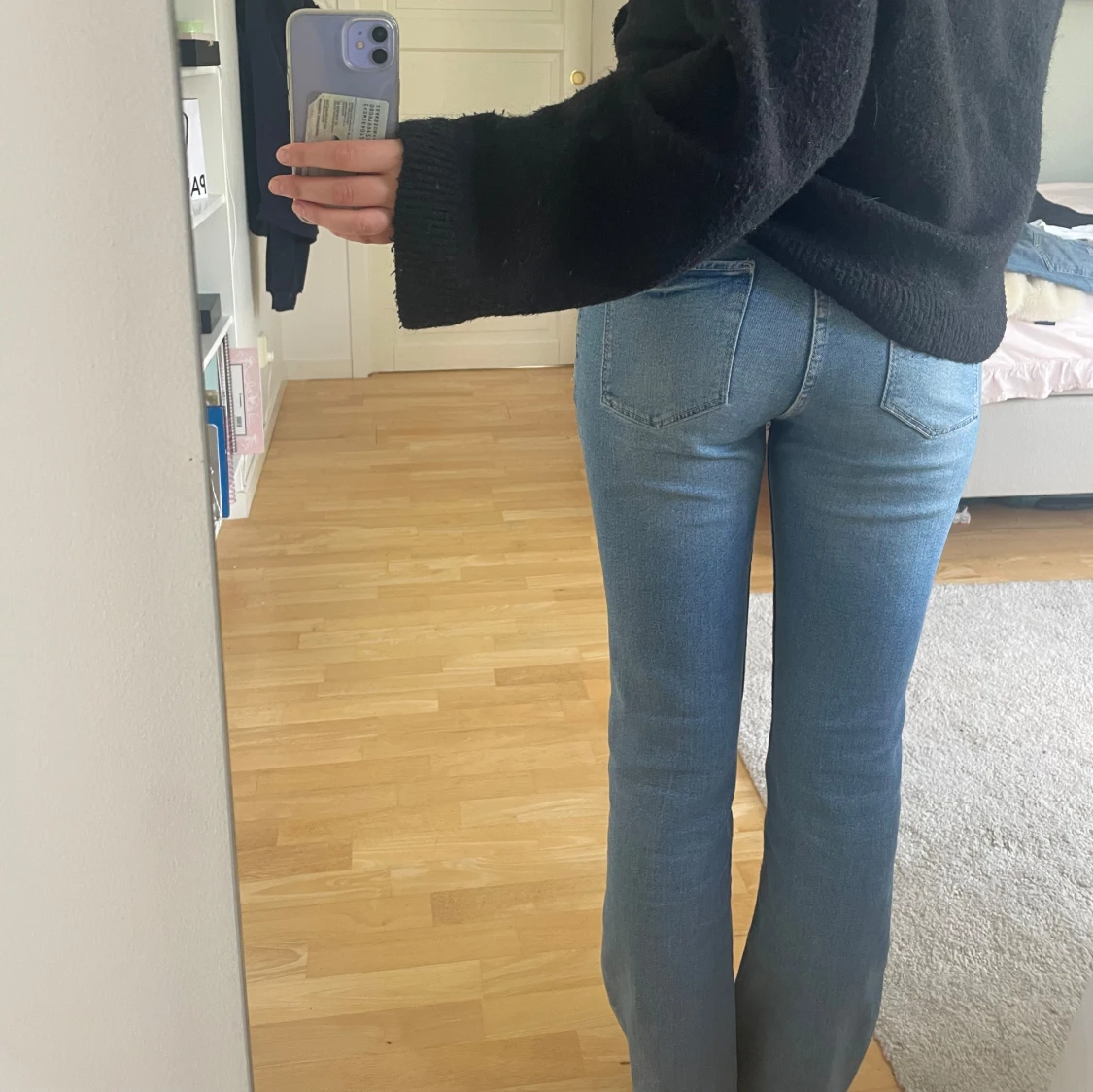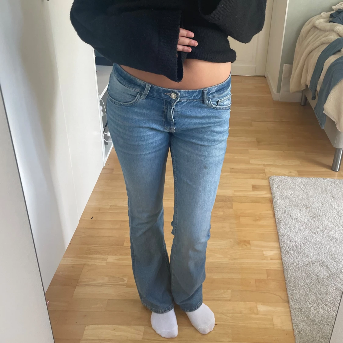 Säljer mina lågmidjade jeans från Bershka💗de går hela vägen ner på mig som är 170cm