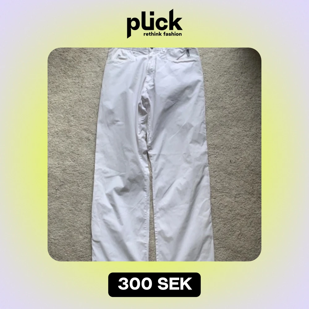 Y2k vibe vita bomullsbyxor Perfect lågmidjad passform, passar mellanmidjat. Vidare, raka ben. kritvitt tunt men grovt tyg Bra skick, liten fläck längst ner på höger ben.