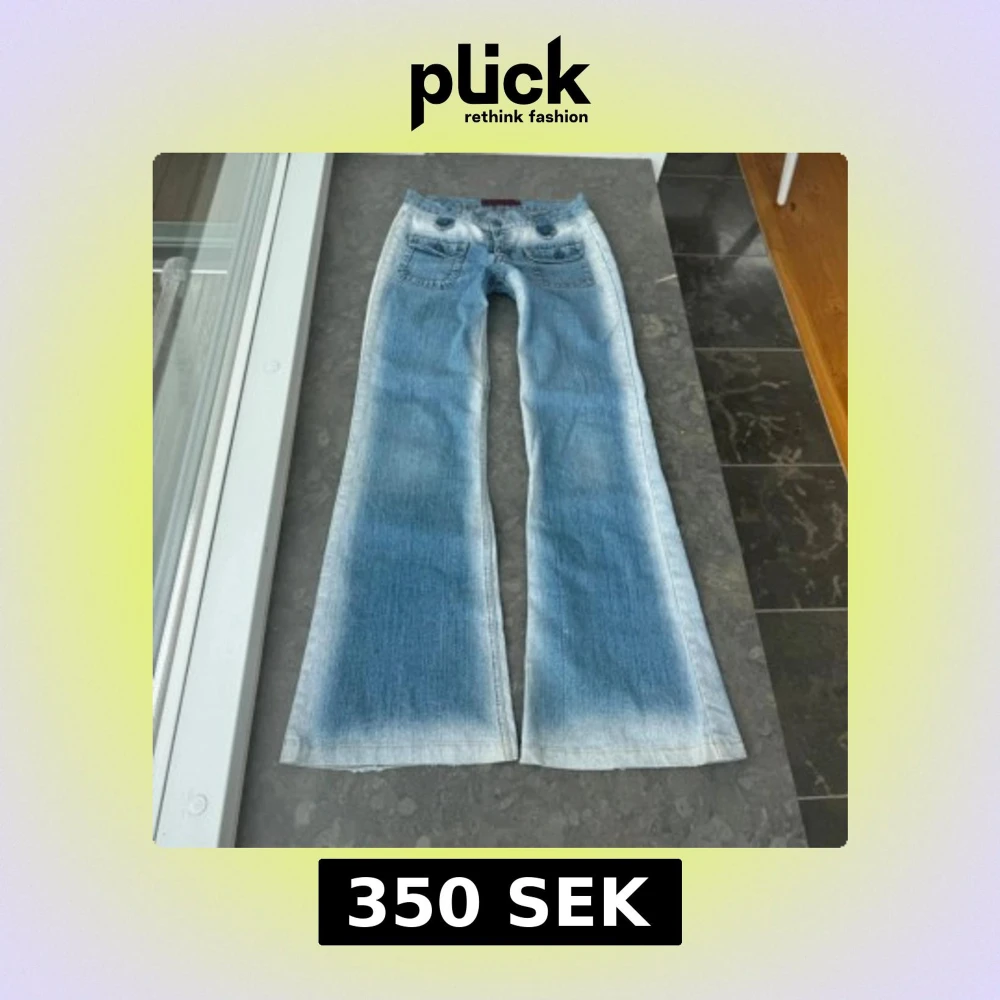 Snygga jeans som jag köpte second hand. Midjemått tvärsöver: 38cm, midjehöjd: 18cm & innerbenslängd 78cm. Low waist