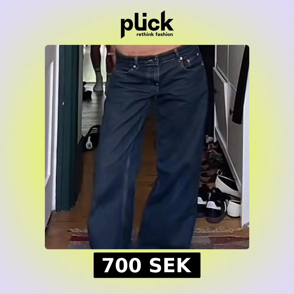 Säljer ett par mörkblå jeans med breda ben och klassisk femficksdesign. Jeansen har låg midja och raka, loose fit-ben för en avslappnad och trendig look. Perfekta för dig som gillar en chill och modern stil. Köpta från motelrocks men är tyvärr för små och hann inte lämna tillbakas, inte min bild. 💞W24 L34 Köpte dem för 920kr
