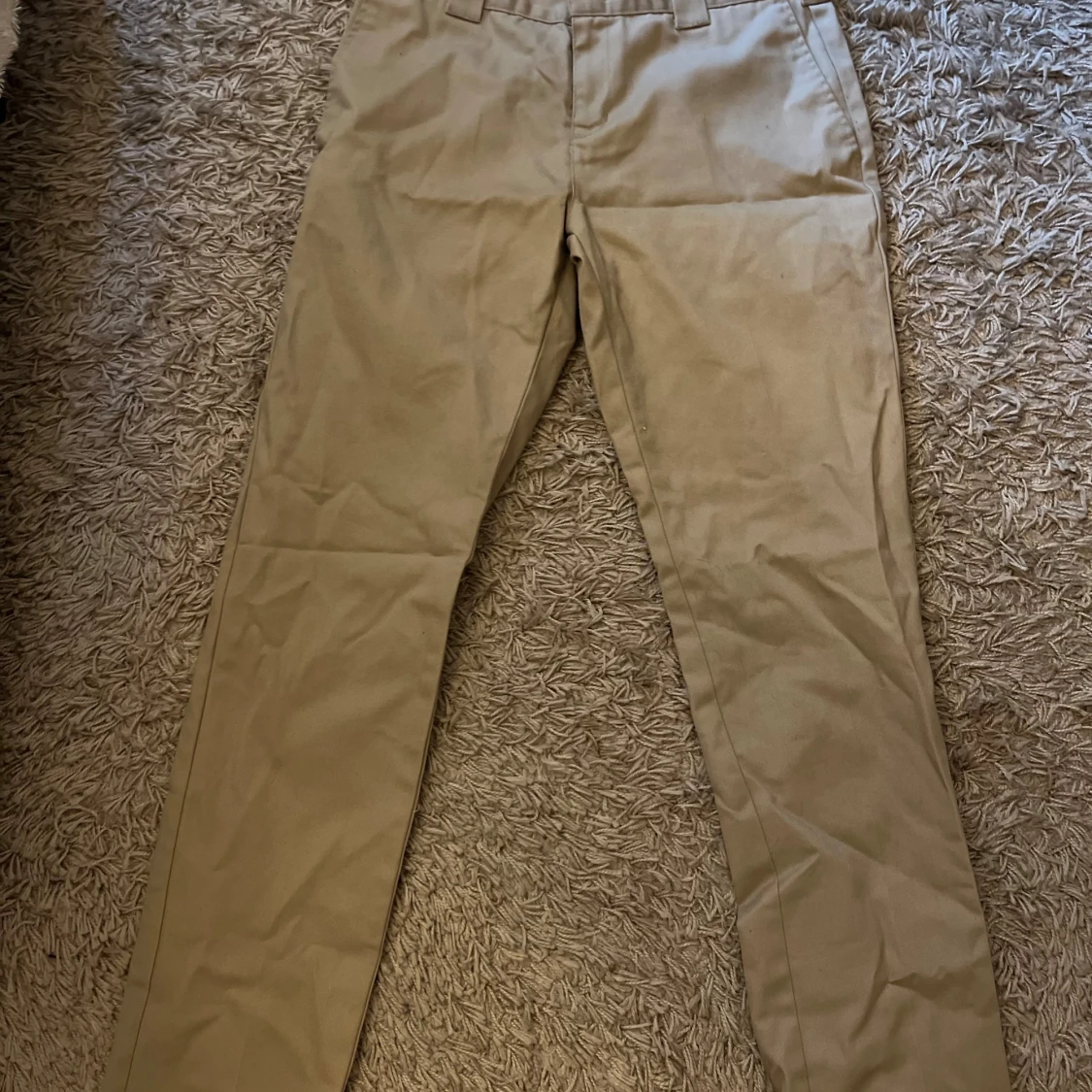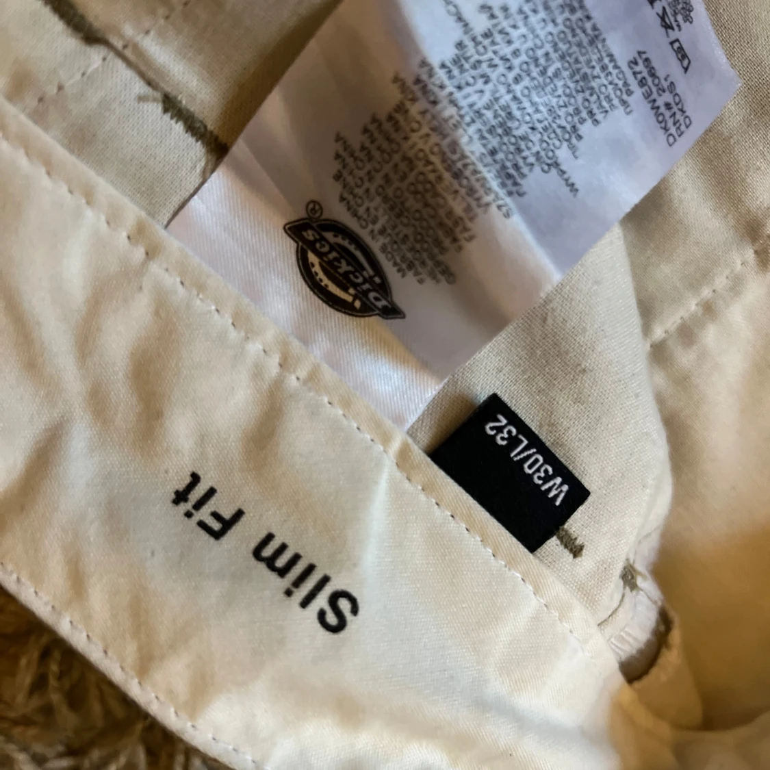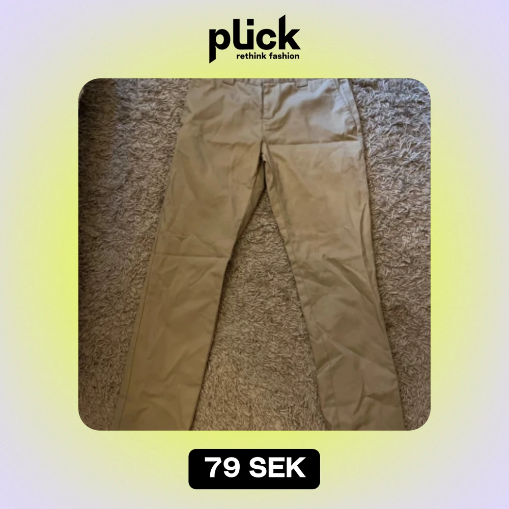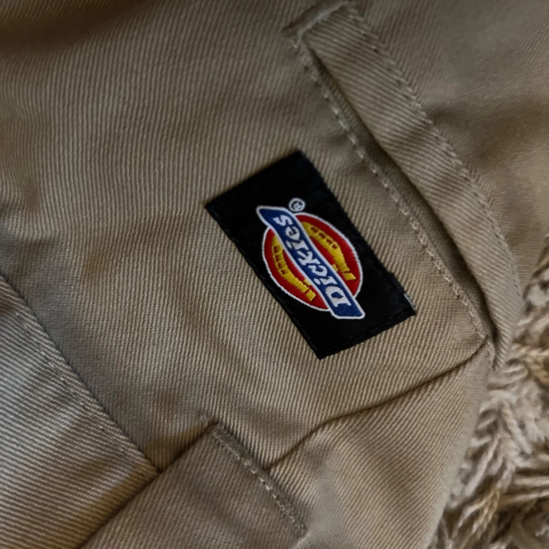 Säljer ett par snygga beige chinos från Dickies. De har en slim fit passform som sitter riktigt bra och ger en stilren look. Perfekta för både vardag och lite mer uppklädda tillfällen. Materialet känns slitstarkt och av hög kvalitet. Kan mötas upp i