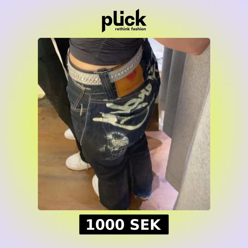 Snygga blå Ed Hardy jeans som inte längre används då jag inte har ”samma stil” längre och rensar garderoben men de var verkligen mina favorit jeans förut. Super sköna :) De har lite slits vid hälen bak då de är liiite långa på mig, jag är ca 172 cm. Storlek M och straight. 1000kr eller kom med bud behöver bli av med dem :)