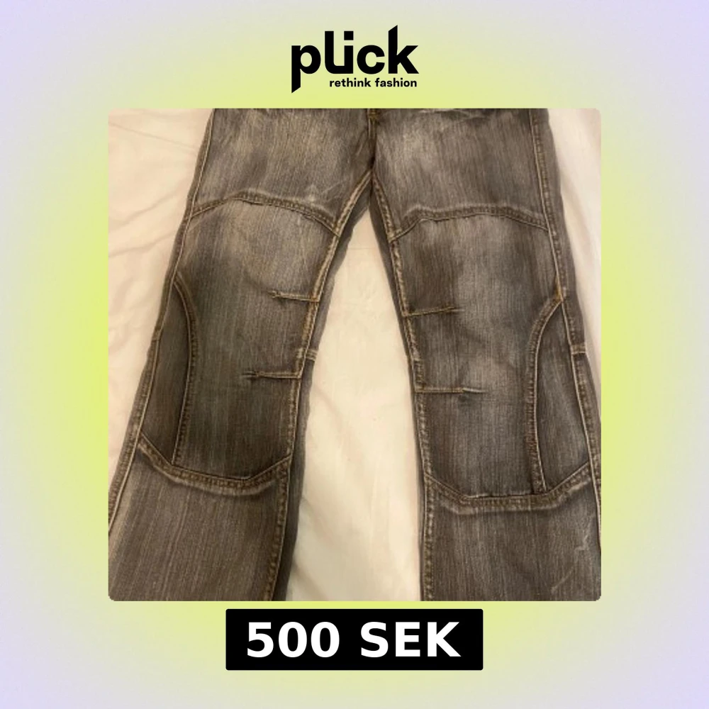 Säljer ett par grå Vinted jeansbyxor från Fishbone med unika sömdetaljer och dekorativa bakfickor med broderade X. Skulle säga att dem e ganska stora i storleken 💗 dem är lite mer baggy där nere men skulle inte säga att dem e bootcut,dem är lite använda från längesen då dem är lite slitna längst nere men det är inte så jätte mycket skulle jag ändå säga annars är dem i bra skick