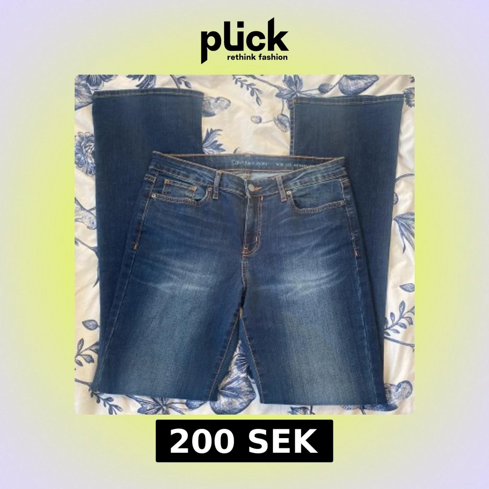 Snygga blå jeans från Calvin Klein Jeans med bootcut-modell och klassiska orange sömmar. Byxorna har fem fickor och stängs med knapp och dragkedja. Perfekta för dig som gillar en tidlös jeansstil.
