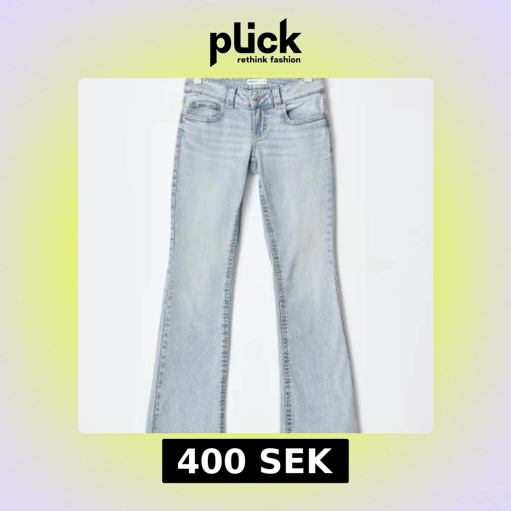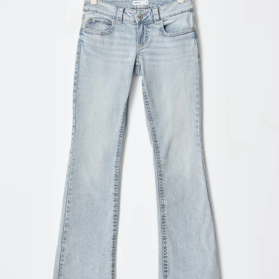 lånade bilder från hemsidan! Säljer dessa lågmidjade bootcut jeans, knappar bak på fickorna. Är Gina Tricots Y2K jeans. Använd en gång.