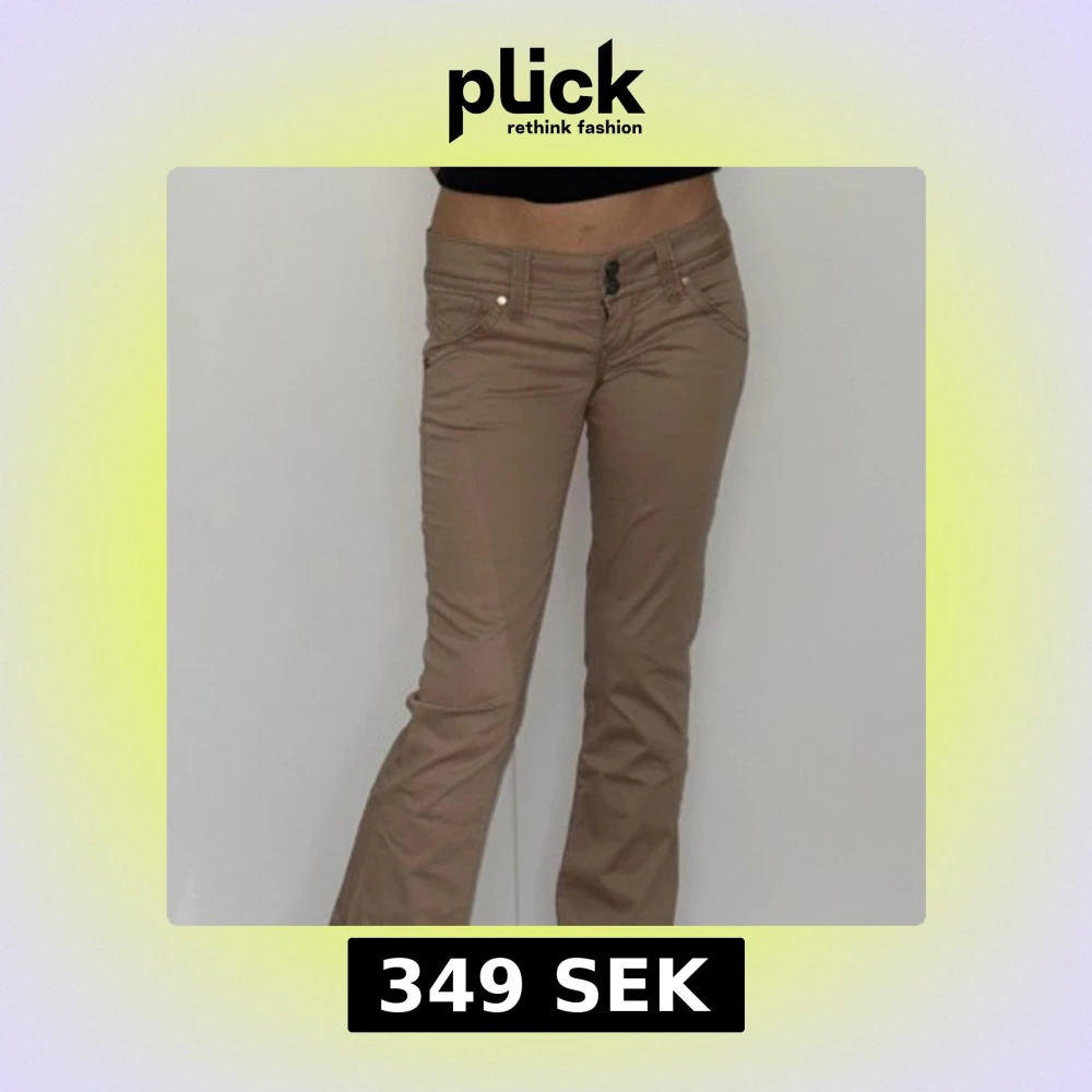 Snygga beiga byxor från Guess med bootcut/straight fit. Byxorna har dekorativa sömmar, fickor med lock och knapp bak.
