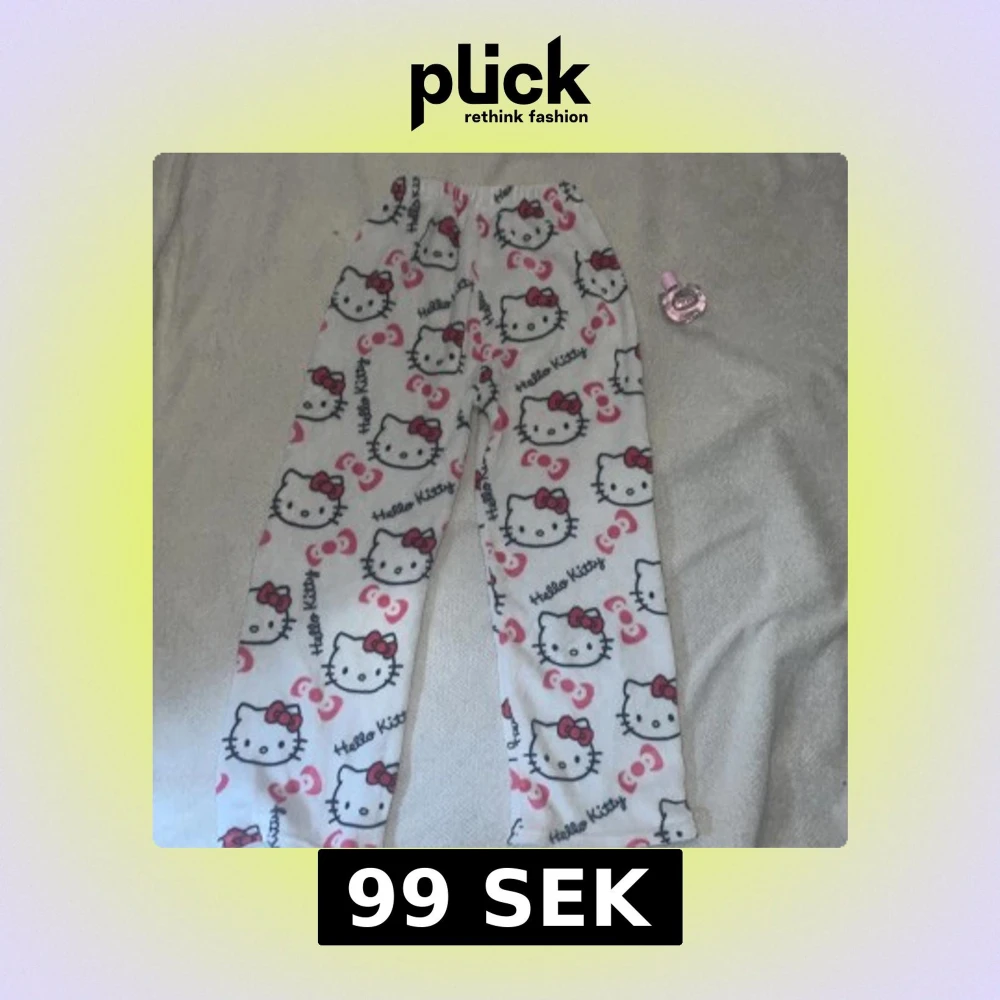 Supermysiga vita mjukisbyxor i fleece med Hello Kitty mönster😋MÅTT// INNERBEN: 57,5cm LÅRVIDD: 25cm FOTVIDD: 23,5cm