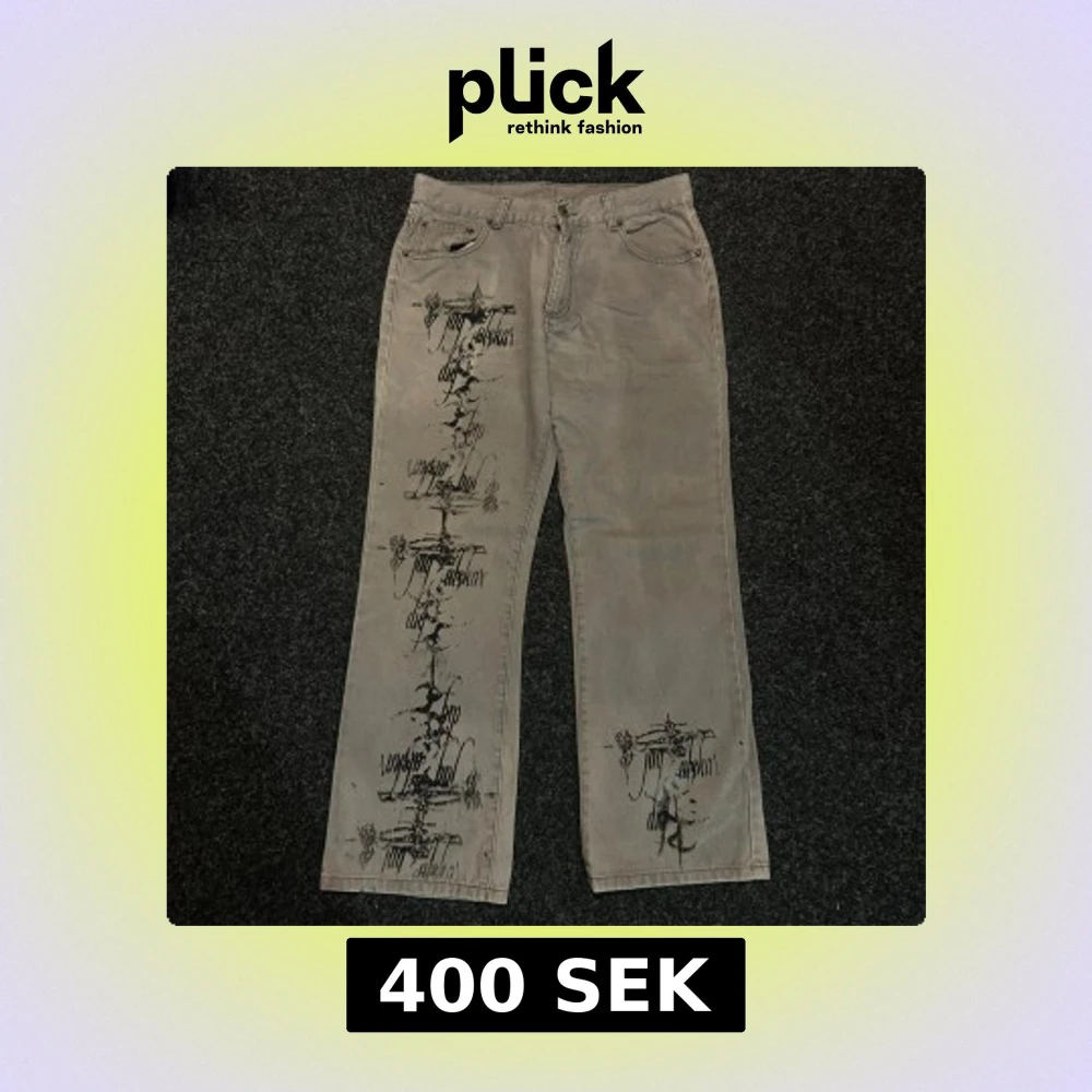 Storlek: w34/L30, skulle säga 32 midja enligt mig. Inga flaws. Textilfärg använt till trycket.