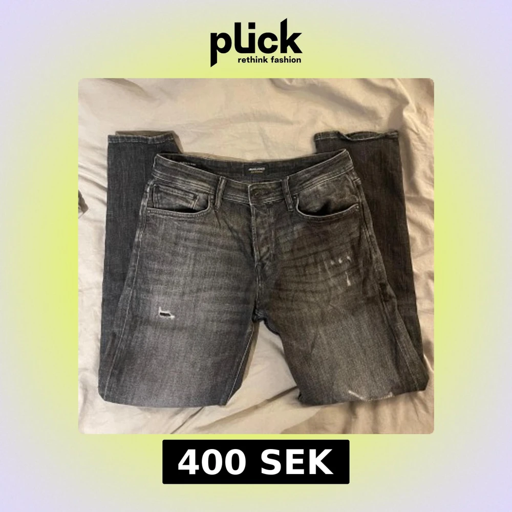 Snygga grå jeans från Jack & Jones med slitna detaljer för en cool look. De har en klassisk femficksdesign och knappgylf. Perfekta för en avslappnad stil. Storleken är 32/32 hör av er om ni har ytterligare frågor!