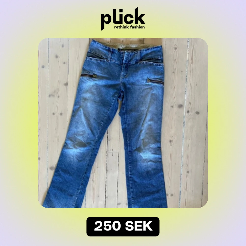 Snygga jeans utan jackfickor! Jeansen är lågmidjade och lite bootcut, absolut inte skinny. Innerbenslängden: 80 cm Midjemått: 38 cm