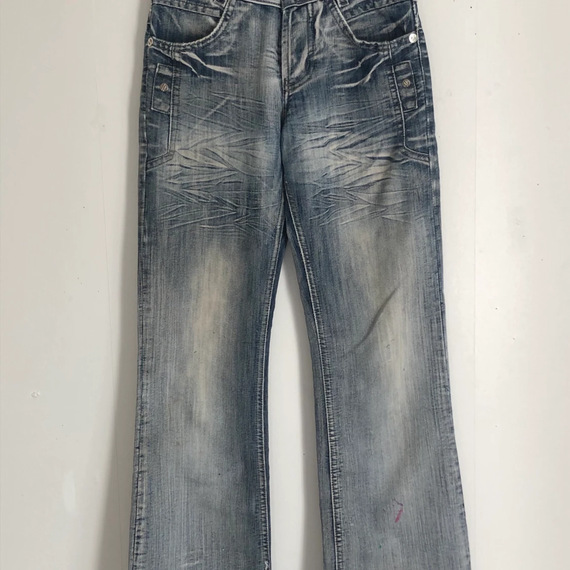Fina low waisted jeans hyfsat bra skick, det ändå är en liten färg fläck som ni ser på bild 3. Jeansen passar nån som är mellan 1,55 till 1,65.
