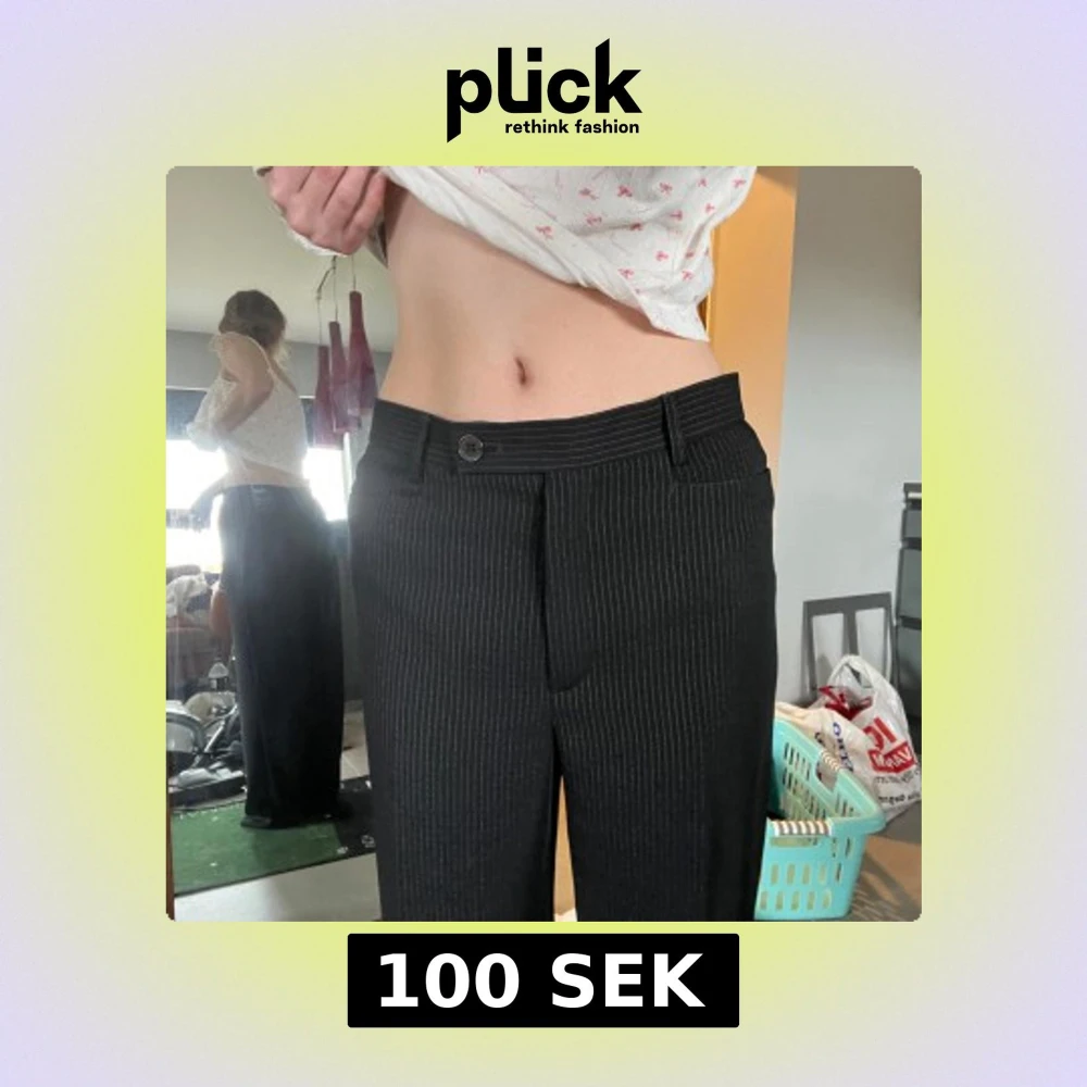 Snygga svarta lågmidjade kostymbyxor från Merrytime med diskreta ränder. I storlek 38 men jag skulle säga att den passar S! Byxorna har en klassisk design med knapp och dragkedja framtill. Tillverkade i 100% polyester för en bekväm passform. Perfekta för en stilren look.