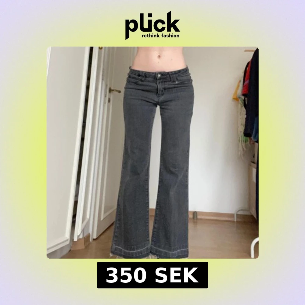 Såå fina 2000tals lowwaist jeans i grått!! Fina detaljer som glittrig silvrig sten på framknappen!! W29 o stretchiga, jag på bilden är 1,65:)