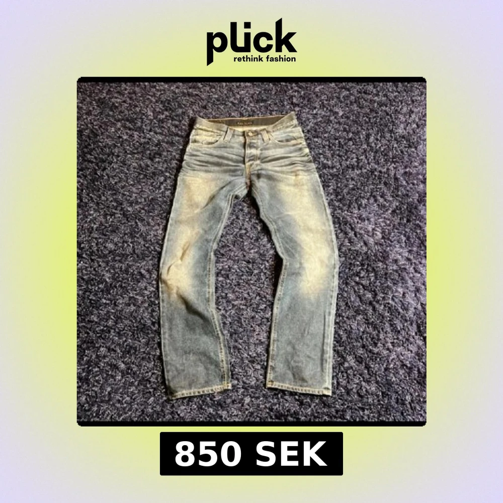 Säljer ett par klassiska blå jeans från Nudie Jeans med raka ben och normal passform som heter average joe. Jeansen har fem fickor, ljusa slitningar och en läderpatch bak i midjan. Perfekta för en avslappnad stil. Storlek 30/32 skulle dock säga att midjan är lite mindre än vanligt. Pris kan diskuteras