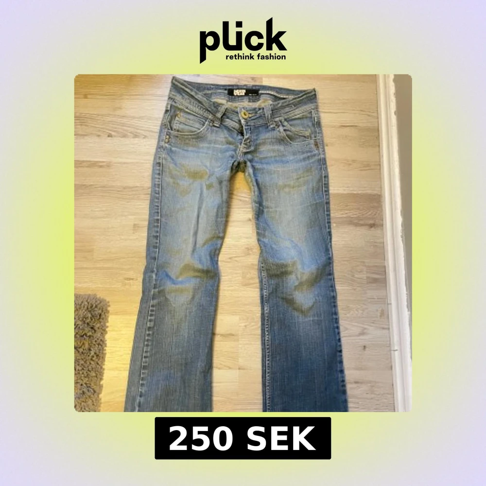Snygga Lowaist e d blå bootcut jeans 💕står ingen storlek men skulle säga ungefär 38. Insydda lite i låren och uppsprätat längst ner för att dom ska blir längre, men inget som syns. Skriv för måtten 💕