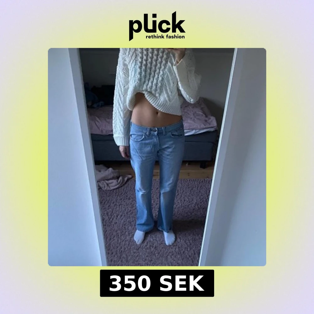 Midrise/lowrise jeans i fin ljusblå färg med slitningar. Midjemått: 40 cm ytterbenslängden 103 cm, straight dig😊