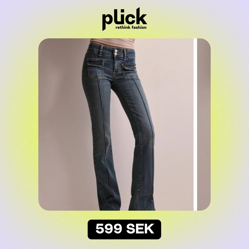 Snygga blå bootcut jeans i mycket bra skick. De har en lågmidjad passform med knappar och dragkedja framtill 🌸