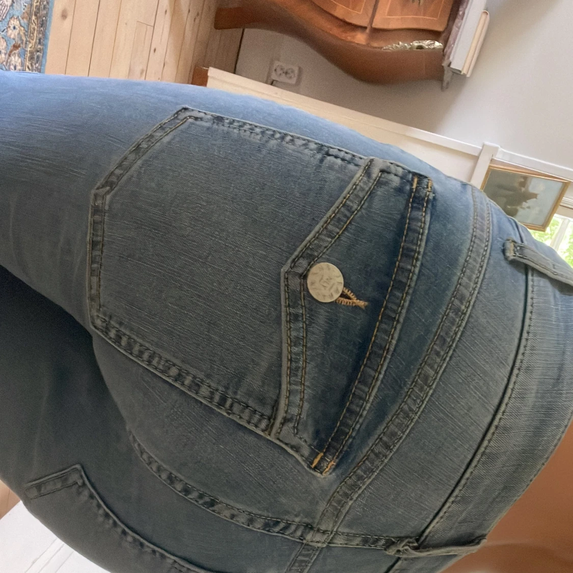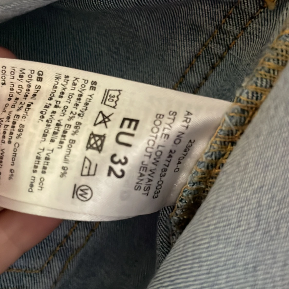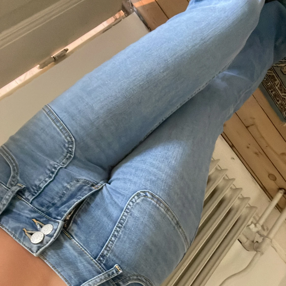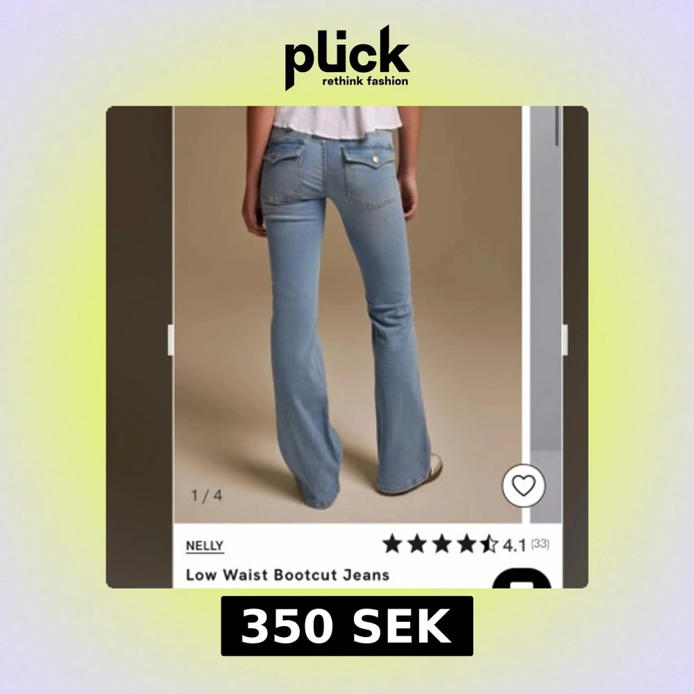 Säljer ett par ljusblå bootcut jeans från Nelly med låg midja. Jeansen har snygga fickdetaljer med knappar både fram och bak, klassisk femficksdesign och är tillverkade i mjukt denimtyg. Köpta för 700 kr, använda fåtal gånger och slutsålda på hemsidan💞