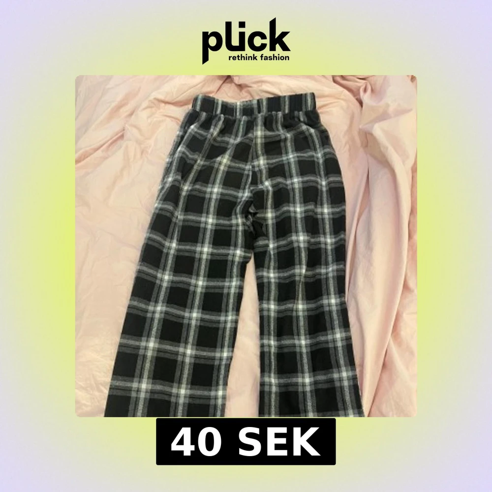 Läs bio! Klassiska rutiga pyjamasbyxor. Använda fåtal gånger. Raka ben och mid/highwaist. För korta på mig som är 165 ish, skulle nog passa någon som är 160 eller kortare. Ingen lapp så vet inte märke eller storlek men skulle uppskatta dom till Medium/Small