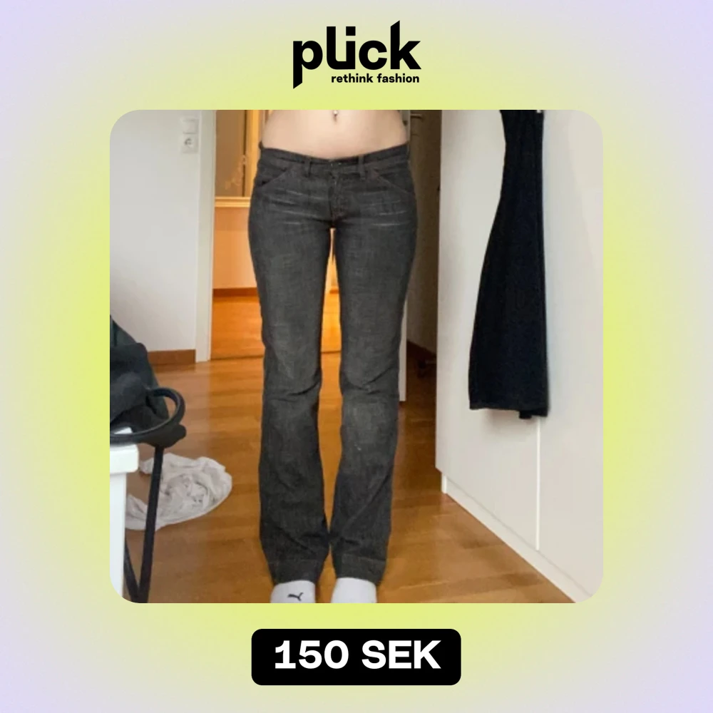 gråa Lågmidjade flaired jeans som tyvärr är lite för små. Men så snygga