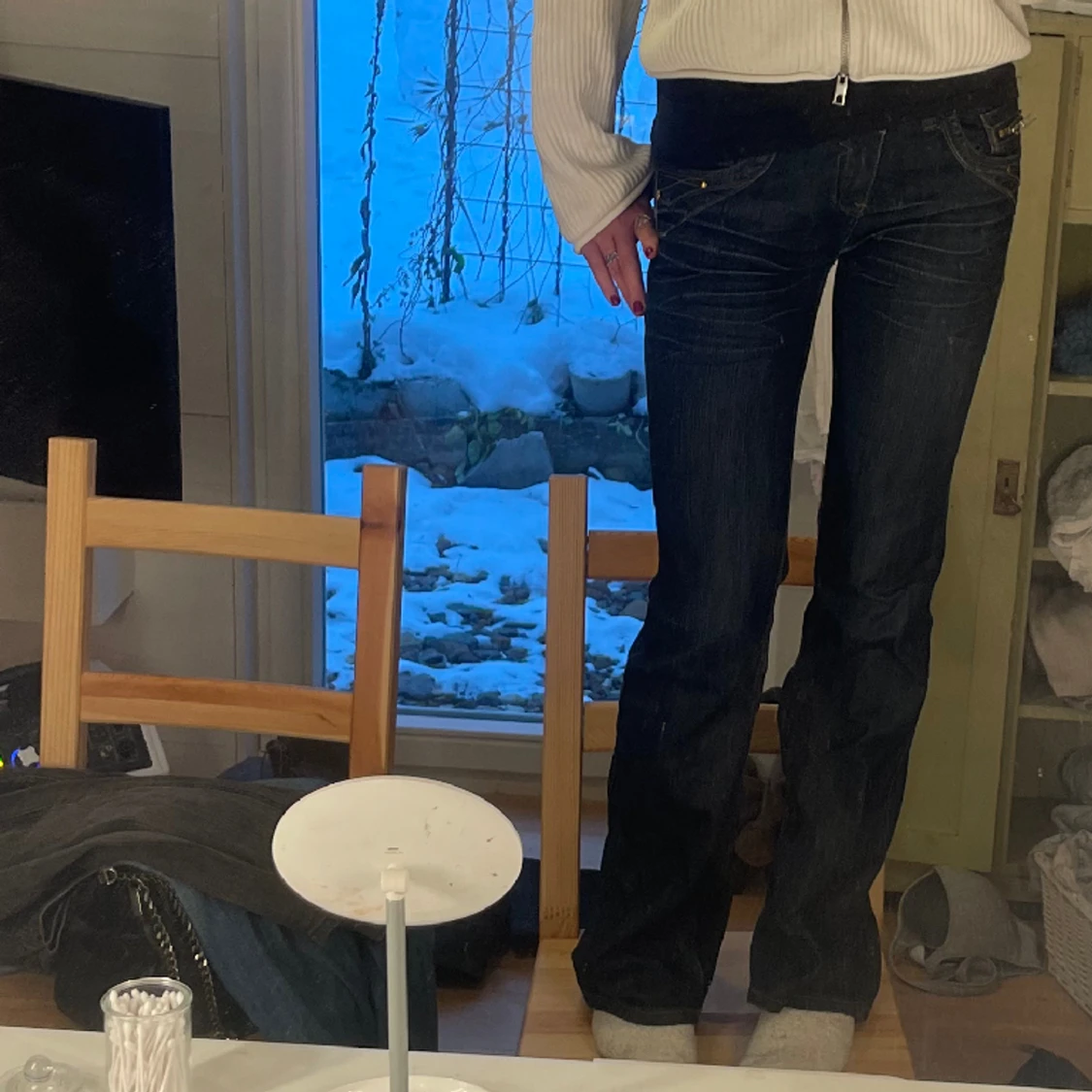 Mörkblå jätte fina Lågmidjade jeans i storlek 36/38 dom är långa på mig som är 170! Hör av dig för mer info ❤️