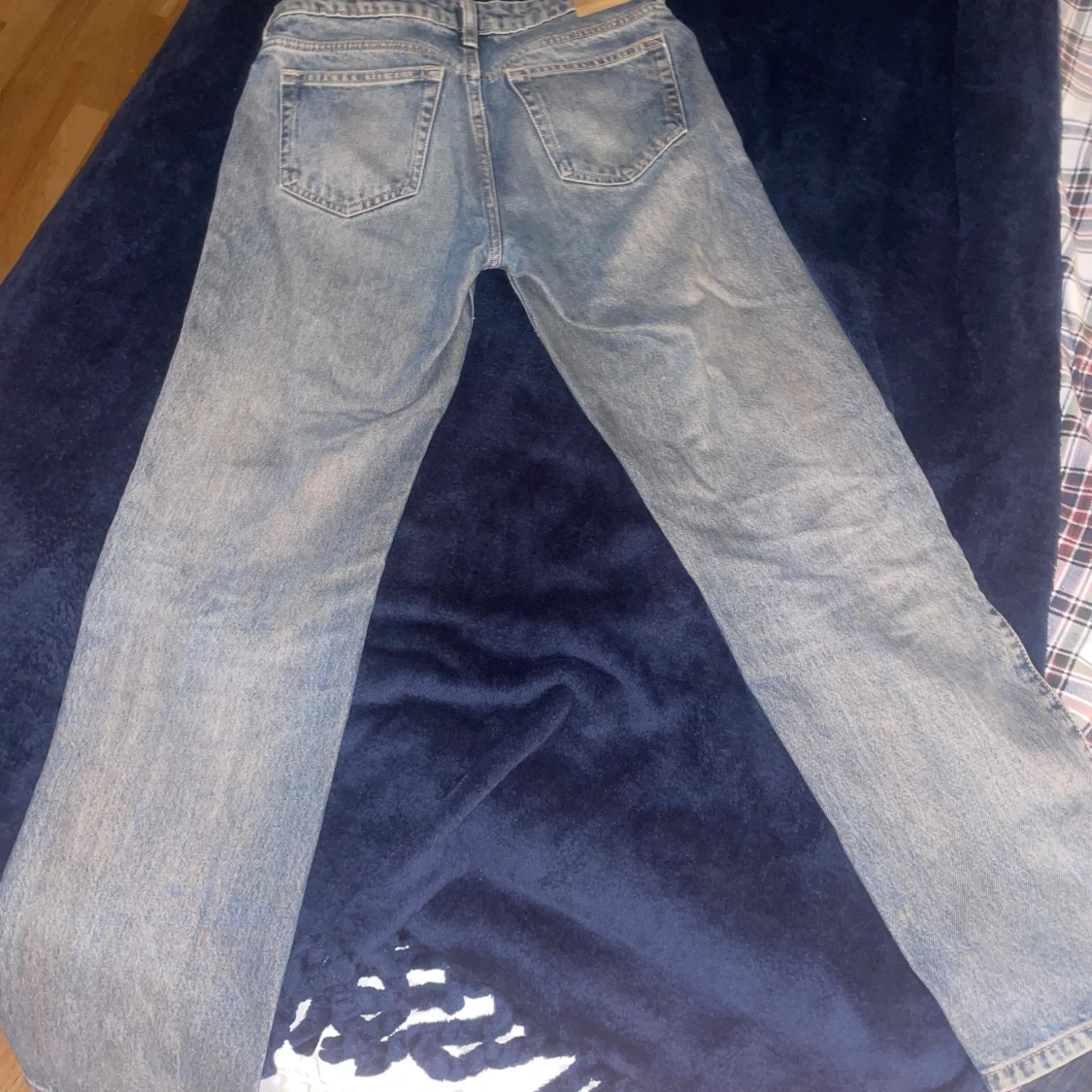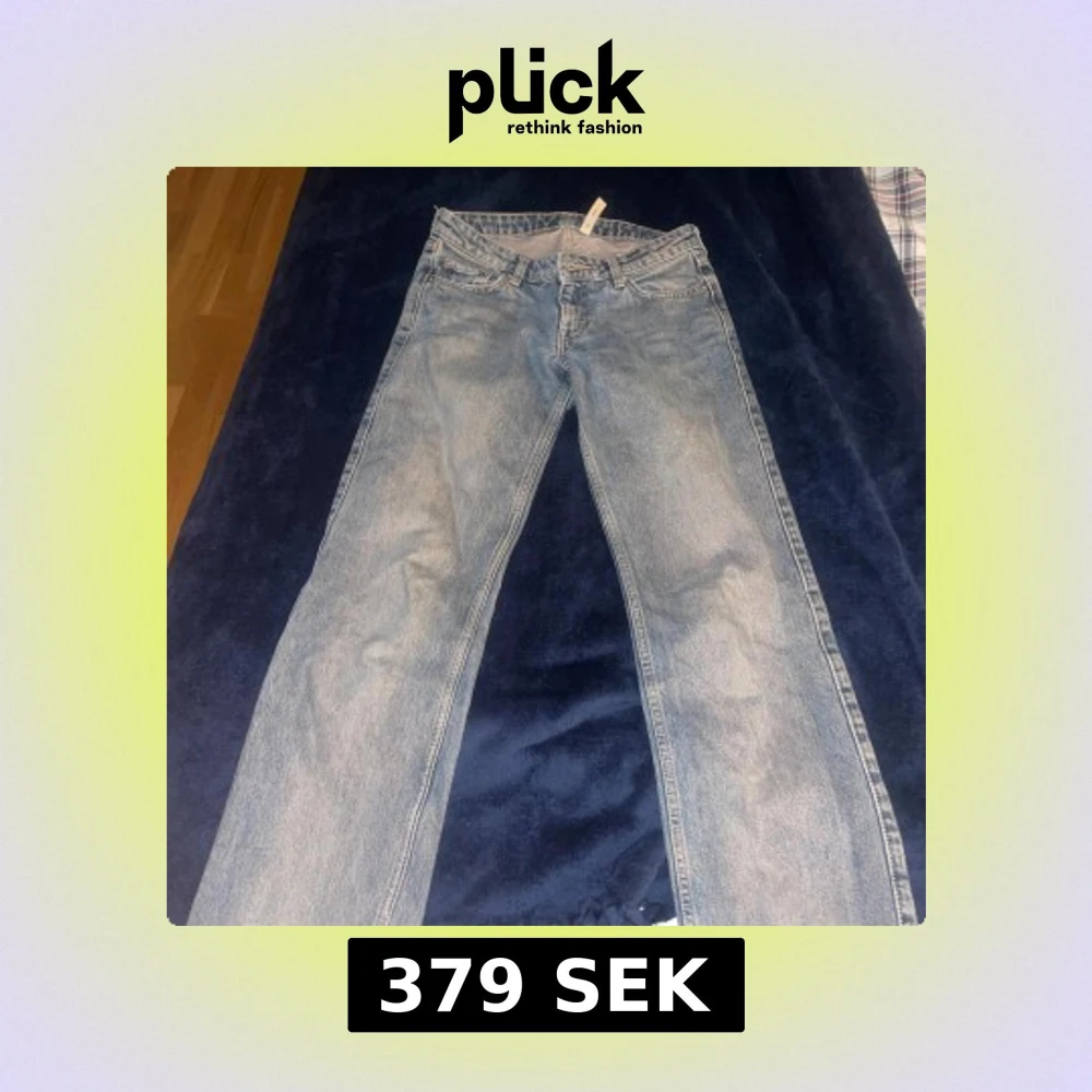 Säljer ett par lågmidjade y2k blå jeans med femficksdesign och rak passform. Perfekta för en avslappnad stil. De har en traditionell knappgylf och bälteshällor. Pris kan diskuteras