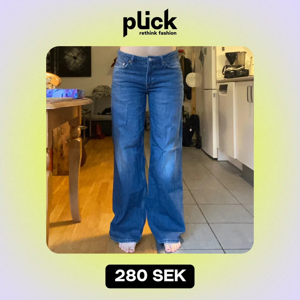 Säljer dessa snygga weekdayjeans! Använda ca 5 ggr (köpta i oktober). Modellen heter: Ample Low Loose Jeans. Lite slitningar längst ner (se sista bilden) Jag är 170! Nypris: 599 kr