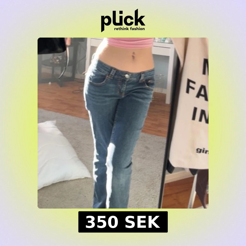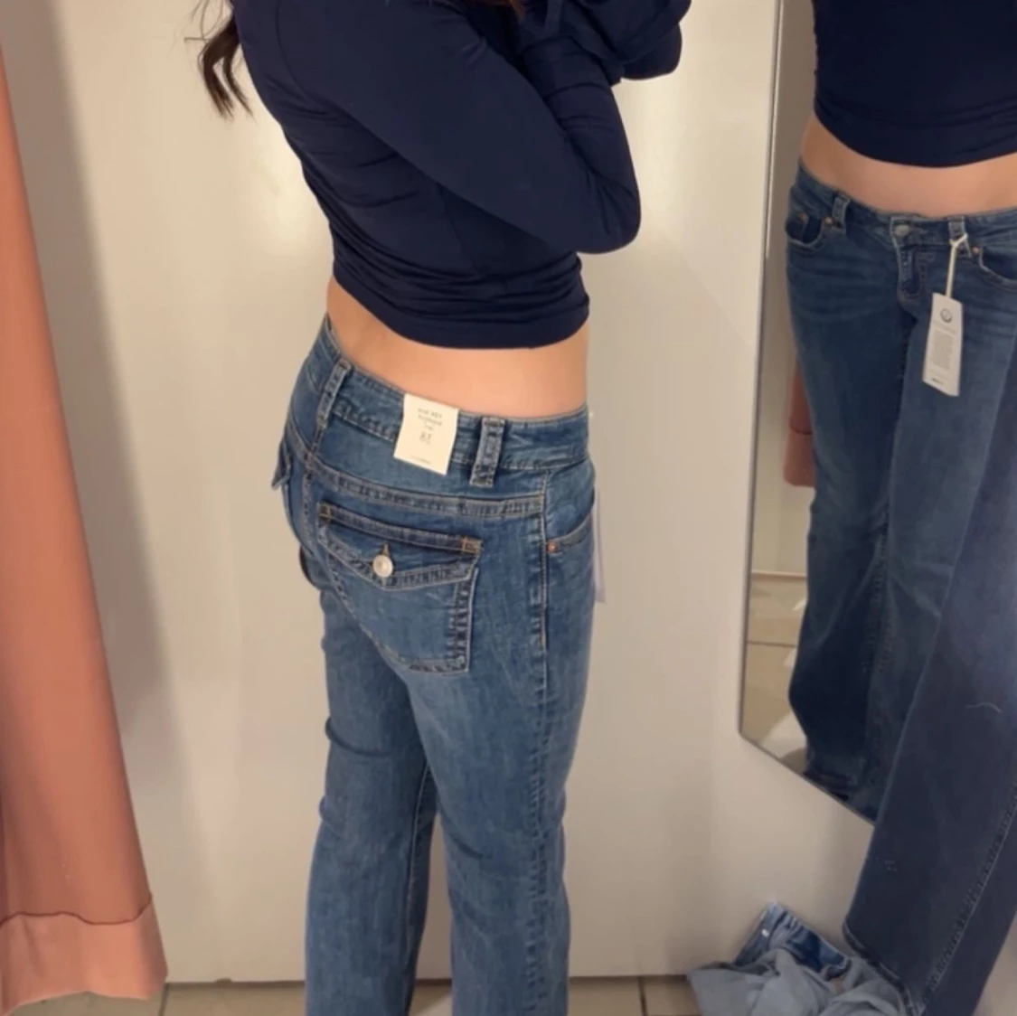 Snygga blå jeans med klassisk femficksdesign och knappgylf. De har en normal passform och är perfekta för en avslappnad stil. Passar bra till både t-shirts och tröjor. Skriv om ni har några frågor!