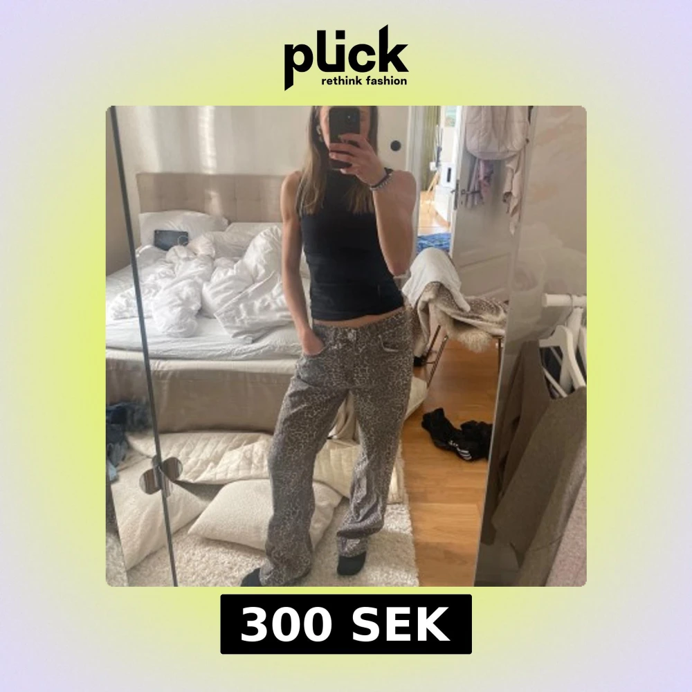 Snygga jeans med leopardmönster. De har en loose passform och är perfekta för en avslappnad stil. Kombinera med en enkel topp för en cool look. Använda ett fåtal gånger. Säljer då de inte passar mig längre.
