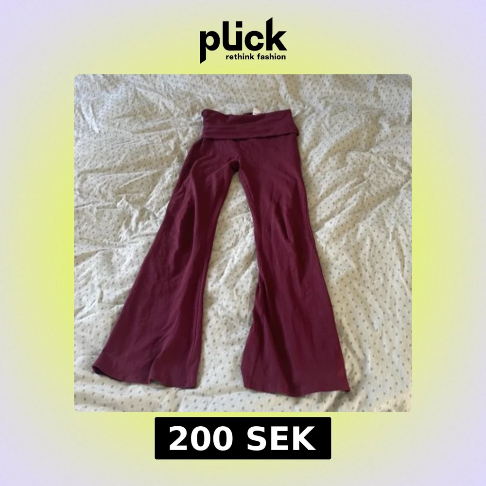 Snygga vinröda byxor med utsvängda ben och hög midja, går att vika ner som yoga pants. Perfekta för en trendig look. Tillverkade i ett mjukt och bekvämt material. Från Lindex och har ett lite hål vid rumpan som inte alls syns. Pris kan diskuteras.