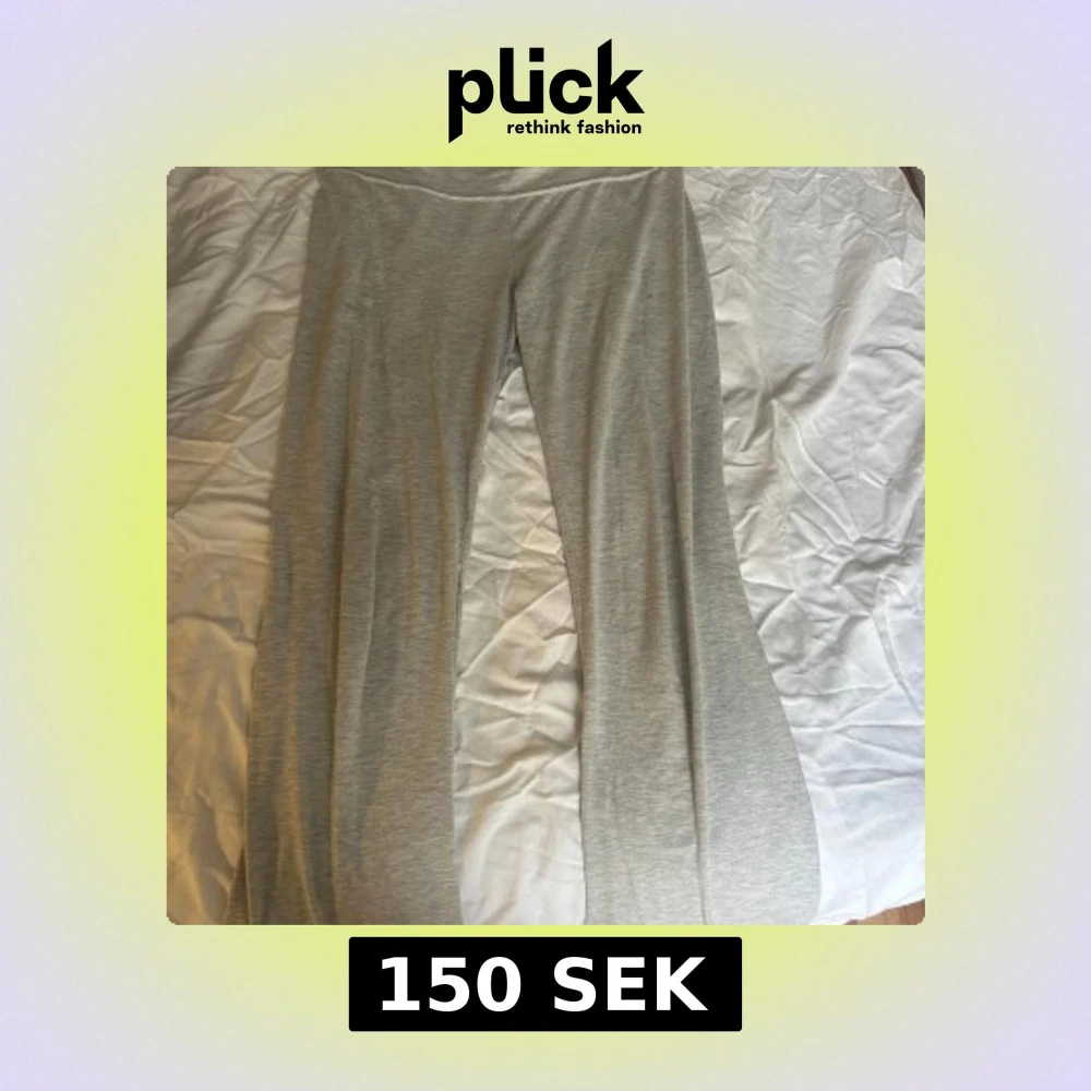 De superpopulära och snygga grå yogapants från Nelly i mjukt material. Låg midja och bra passform. Passar s-m. Använd ett fåtal gånger och lagade sömmar.
