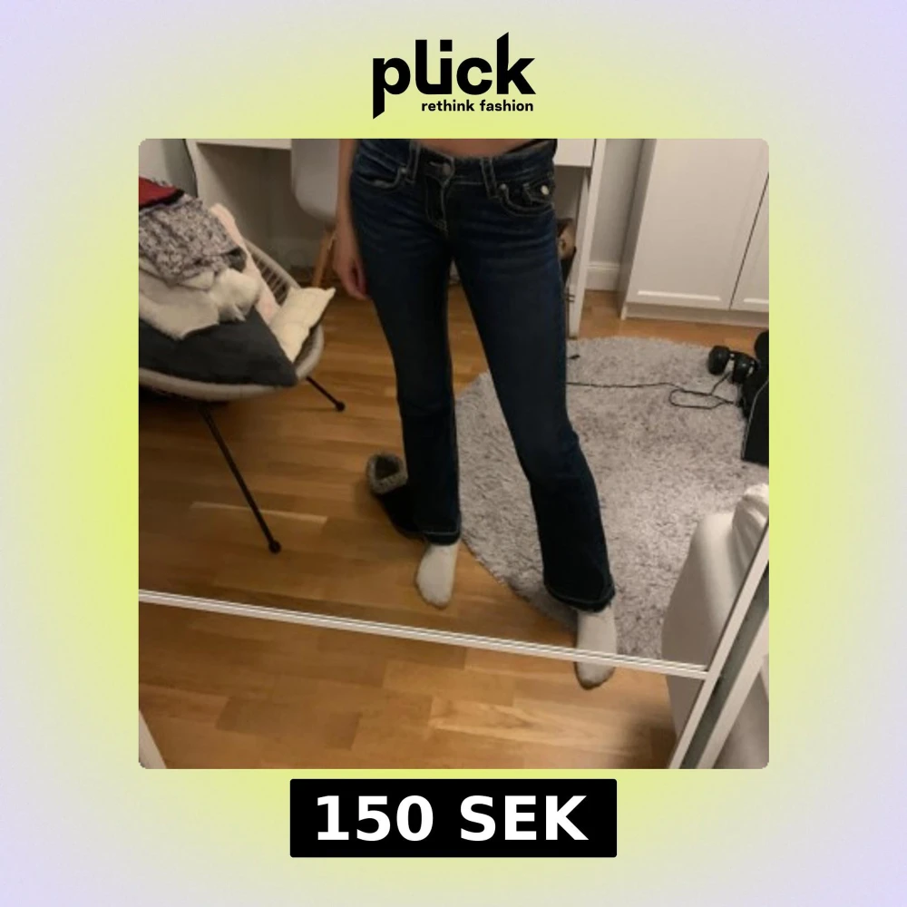 Säljer ett par mörkblå jeans med bootcut passform. Klassisk femficksmodell med låg midja och snygga kontrastsömmar. Storlek 152 men passar en xxs. Uppsprättade längst ned och nu är dem något korta på mig som är 168 cm lång. Passar nog någon runt 165 cm