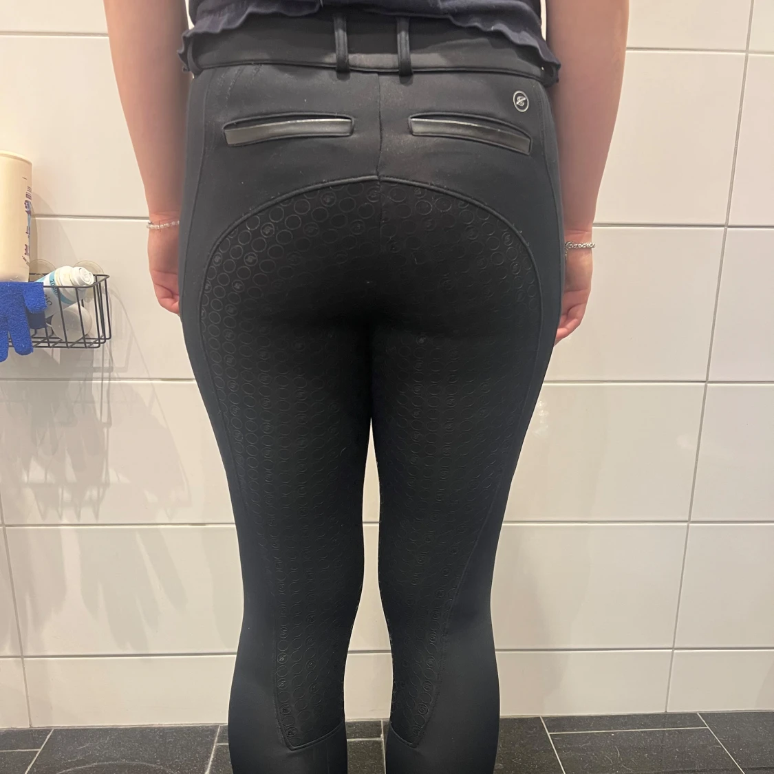 Snygga svarta ridbyxor från ZacZess i storlek S. Byxorna har hög midja och en tight passform med praktiska fickor och dragkedja. Perfekta för ridning med stilren design.