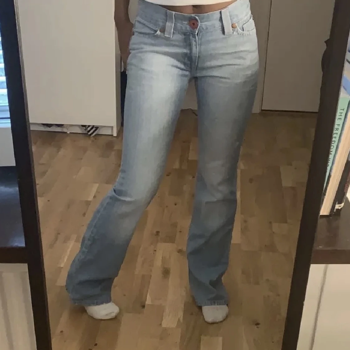 Säljer dessa blåa låg midjade jeans pga av att de inte kommer till användning💗skriv vid frågor