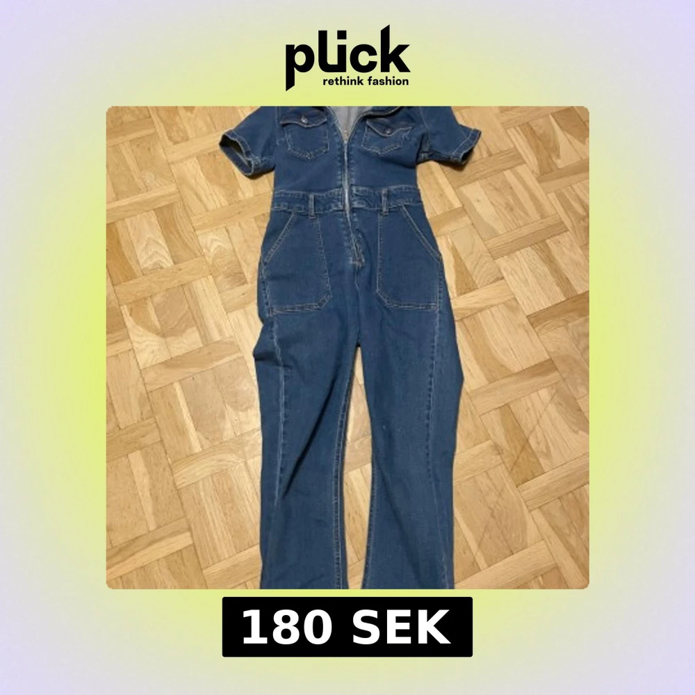 Snygg blå jeans jumpsuit med korta ärmar och dragkedja framtill. Den har praktiska fickor och en figurnära passform som ger en cool look. 👀