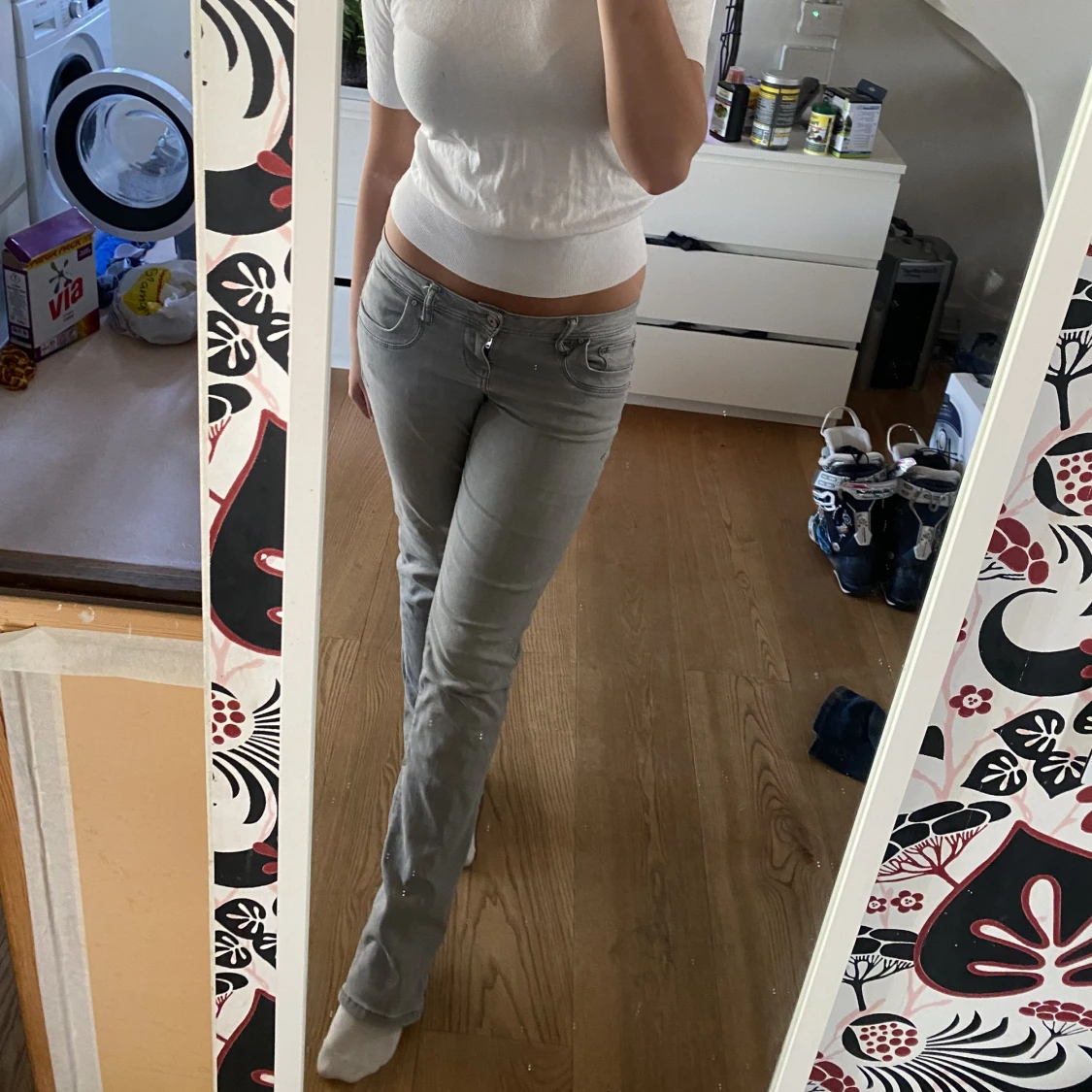 Lågmidjade gråa jeans från zalando