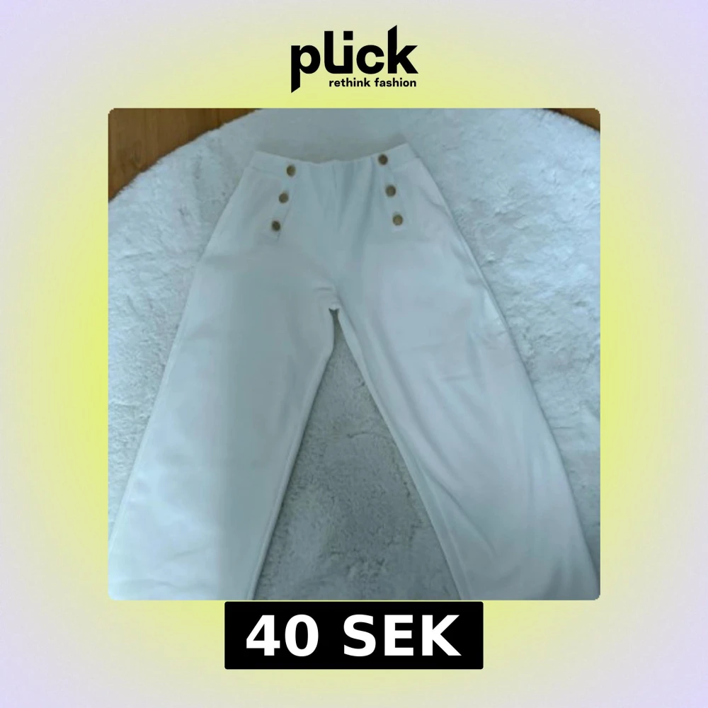 Snygga vita byxor med raka ben och dekorativa guldknappar framtill. Byxorna har hög midja och en clean look som passar till många olika stilar. Perfekta för dig som gillar en fräsch och stilren vibe.