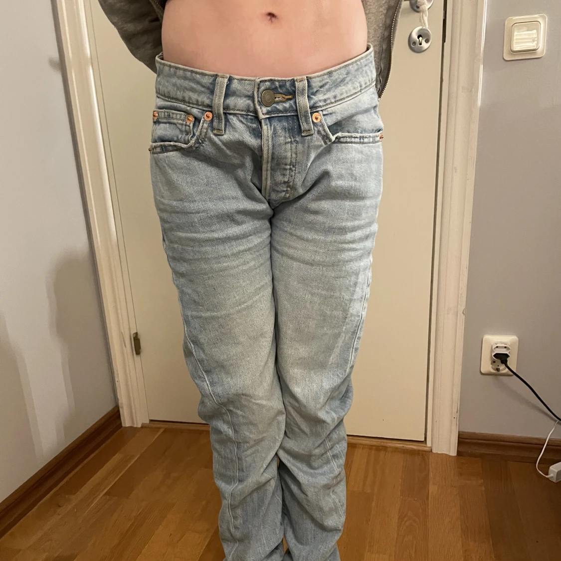 Säljer mina lågmidjade blå jeans! De är i bra skick då de bara använts enstaka gånger. Kan prutas vid snabb och enkel affär💕