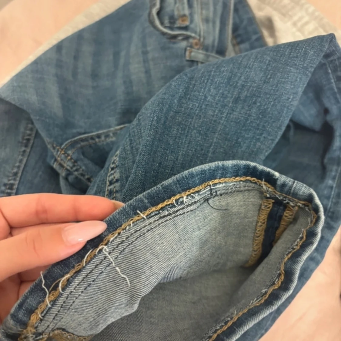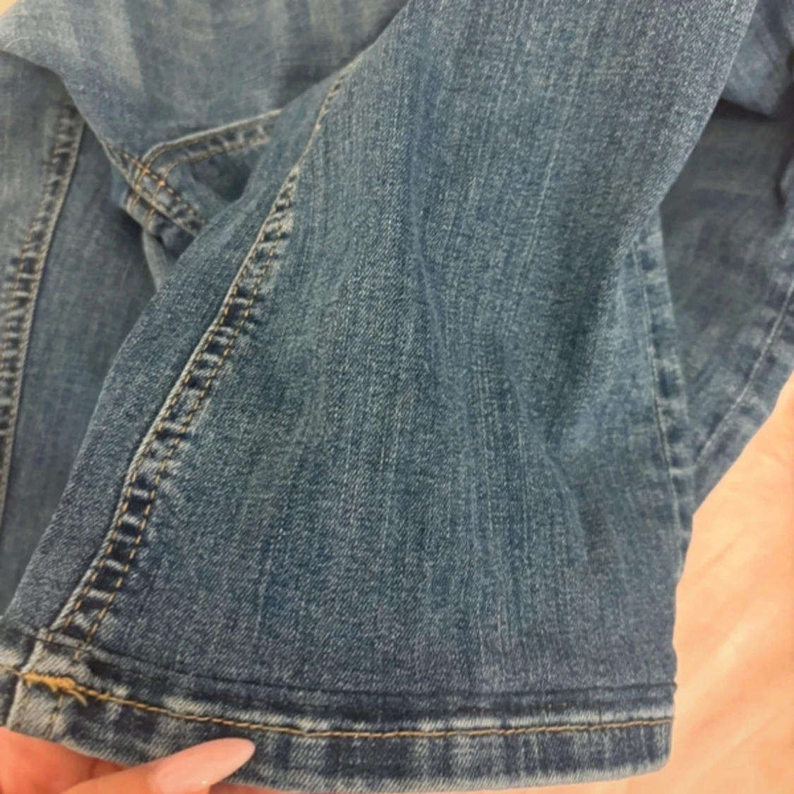 Snygga blå bootcut jeans med låg midja. Perfekta för en avslappnad stil. Klassisk design med dragkedja och knappar framtill. De är Low waist! Och uppsydda med symaskin för att de var för långa!! de är som nya 🥰