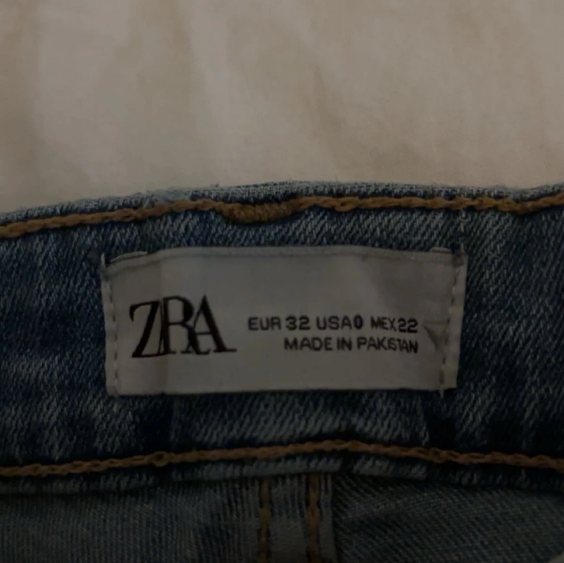 ljus blåa bootcut jeans från zara. storlek 32 sitter jätte fint.