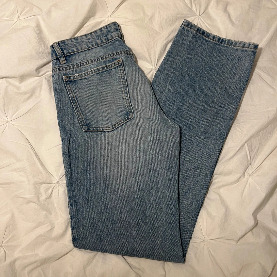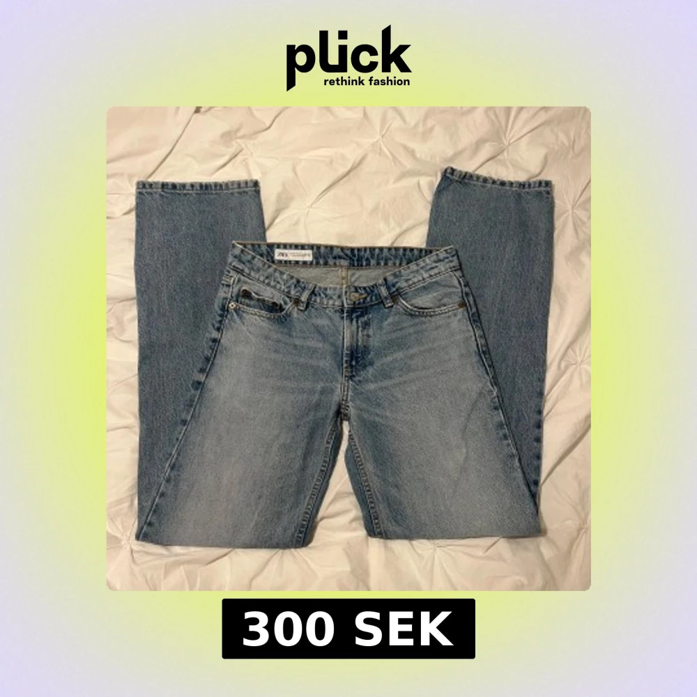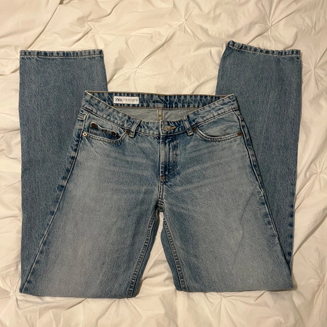 Säljer ett par klassiska blå jeans från Zara. De har en straight passform och är tillverkade i denim. Perfekta för en avslappnad stil.