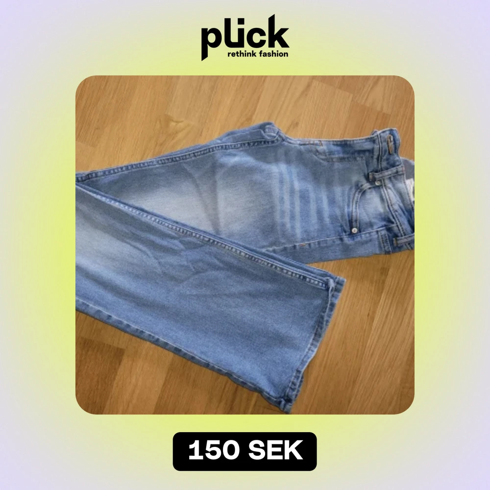 Bild 1: blå jeans bootcut low waist st 32. 100 kr. Bild 2: svarta jeans Zara st 34. 150 kr.