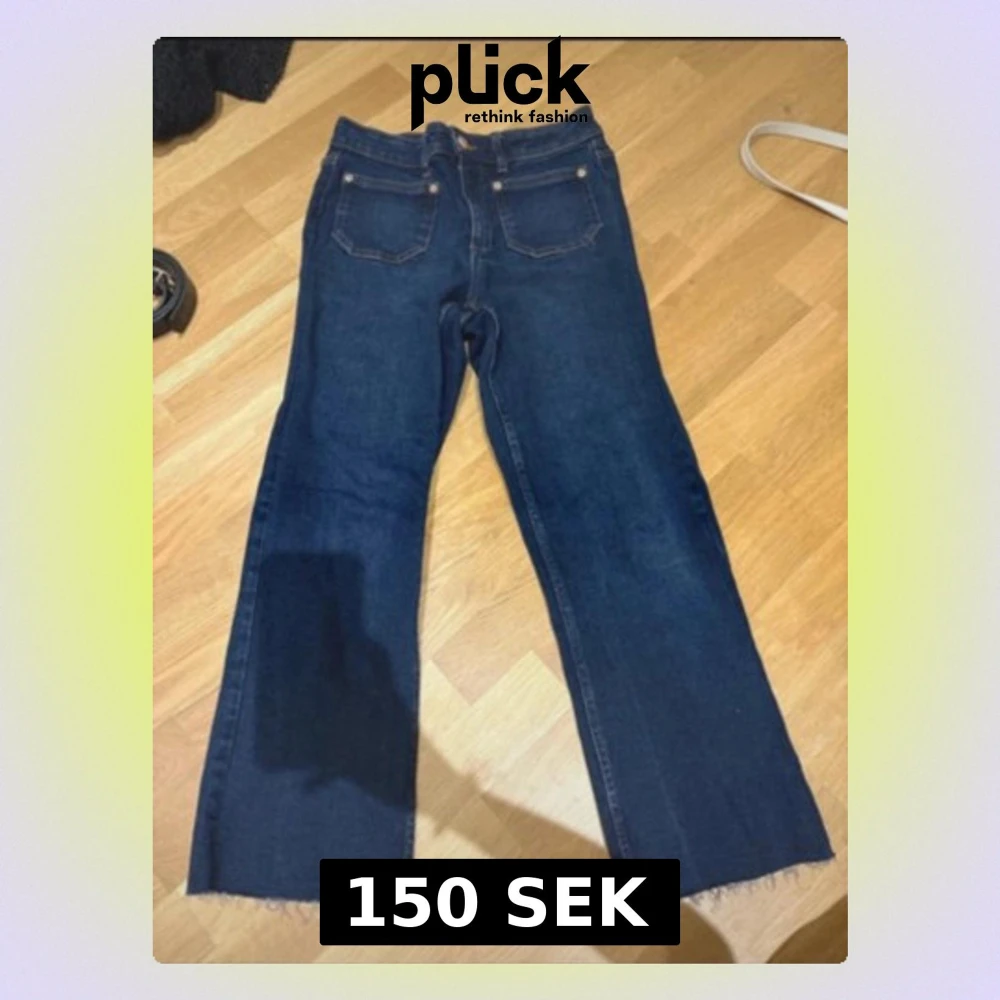 Mörka ankellånga jeans från Zara. Fickor fram och bak. Byxorna slutar byxorna slutar lite under mitten av smalbenet. Har dock sytt in 1-2 cm vid varje lår, märks inte av då de ändå är extremt stretchiga. Bekväma, snygga och extremt billiga.