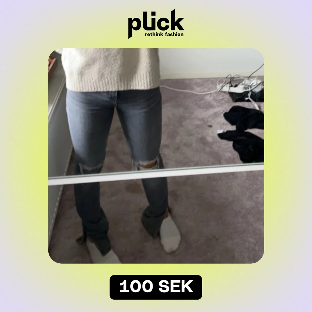 jeans från zara med slits, lite slitna nertill, jättefina men tyvärr för långa. köpt för ca 1 år sen. pris kan diskuteras