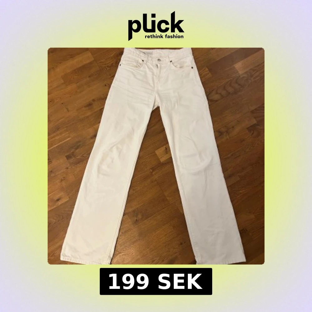 Säljer ett par vita jeans från zara. Jeansen är raka i modellen med medelhög midja. Skriv vid fundering om passform.
