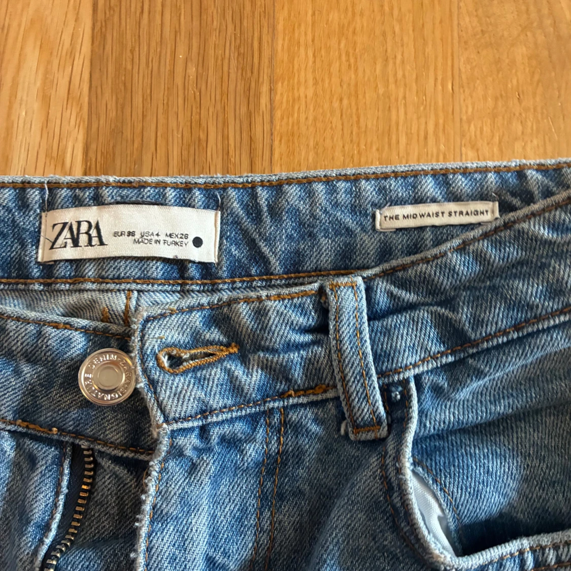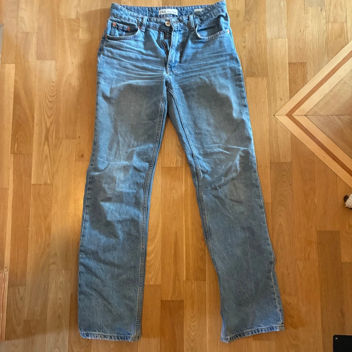 Ljusblå jeans från Zara, storlek 36. Fint skick. Straight leg. Mid Rise.