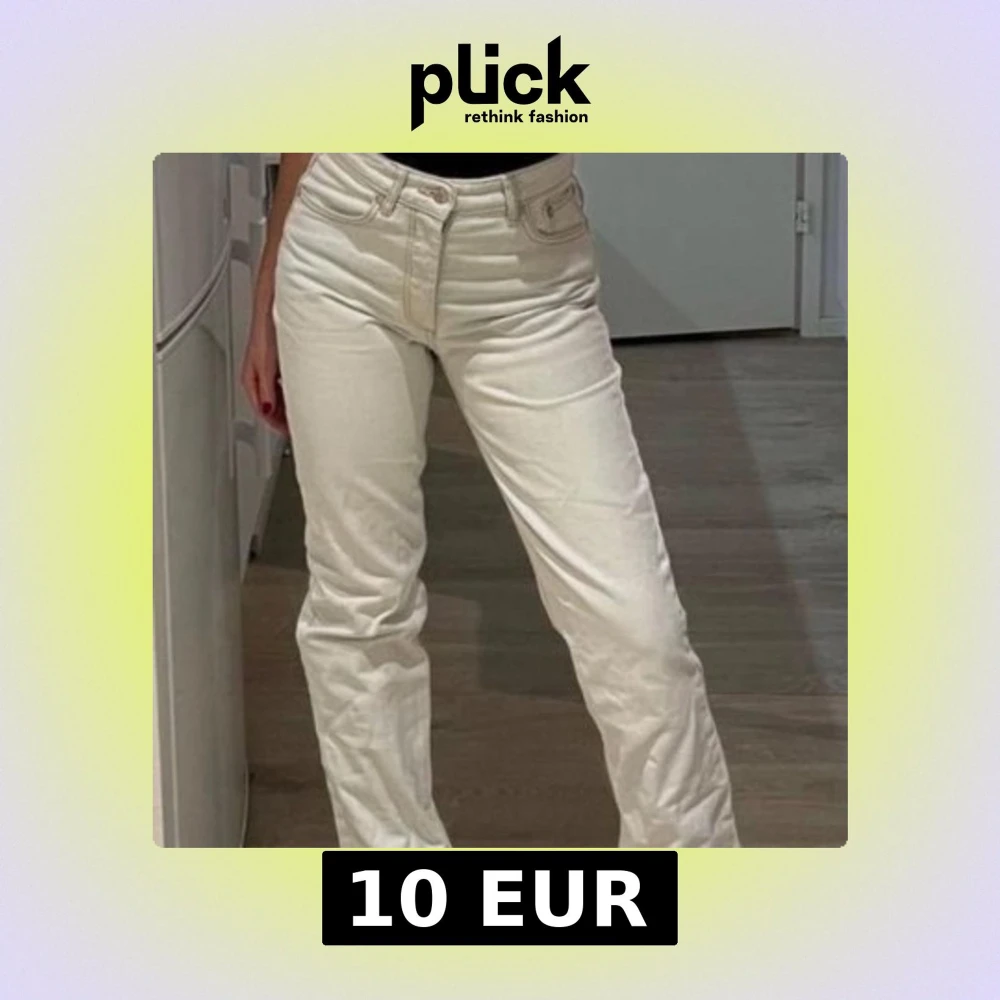 Snygga vita jeansbyxor med hög midja och rak passform. De har klassiska fem fickor och en dragkedja med knapp framtill. Perfekta för en stilren look. Mindre passform